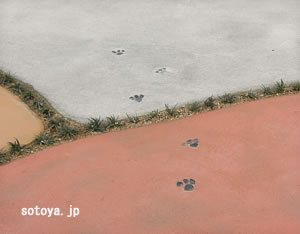よくよくみると、動物の足跡が。