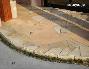 コンクリートのグレーで無機質にならないよう、カラーコンクリートを使い草目地を入れています。