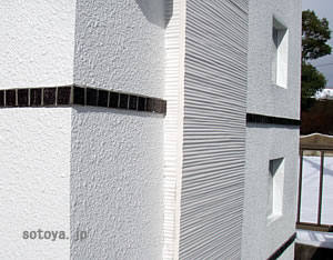 格子の縦ラインが引き立つよう、あえて横ラインの壁を建てました。