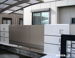 目隠しの壁にはステンレスカラーの格子を使い、モダンな雰囲気です。