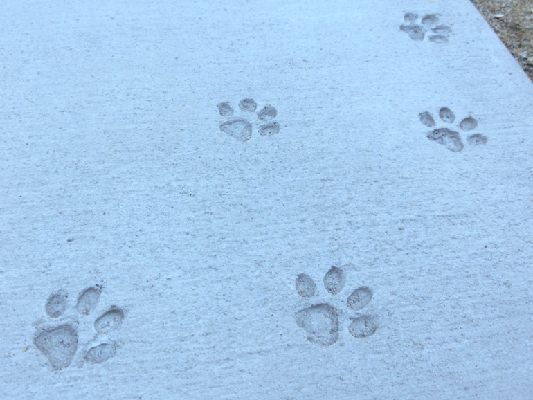 片隅に猫の足跡が・・・ ハッキリ、クッキリ・・・