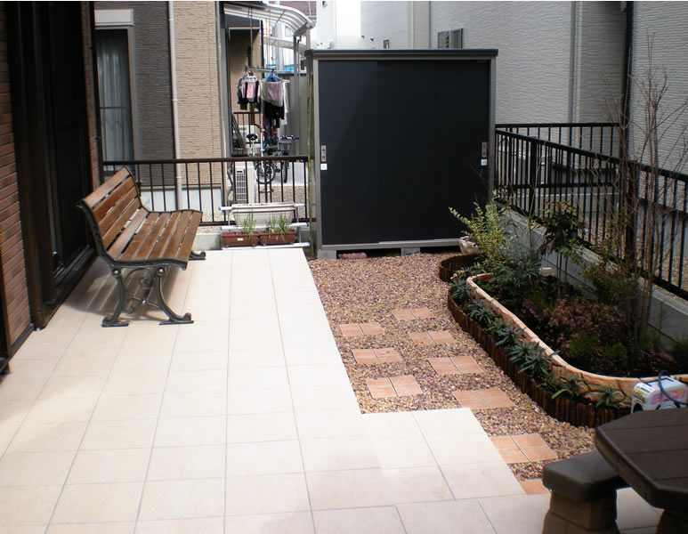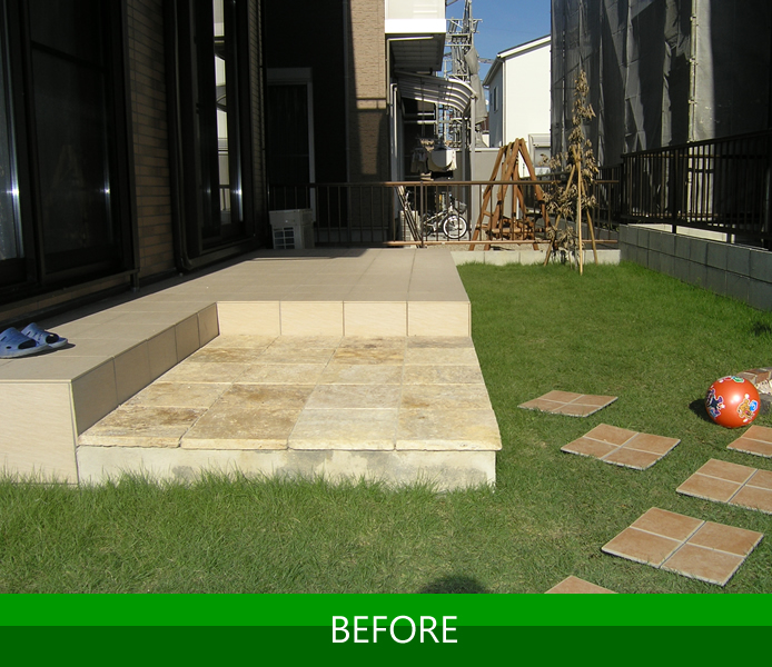 お施主様のご希望は、既設のテラスを延長してテラス上で遊ぶスペースの確保。