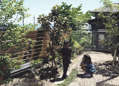 特別ではなく、ふとした日常の瞬間を切り取った写真の背景にもお庭や玄関まわりが映り込む