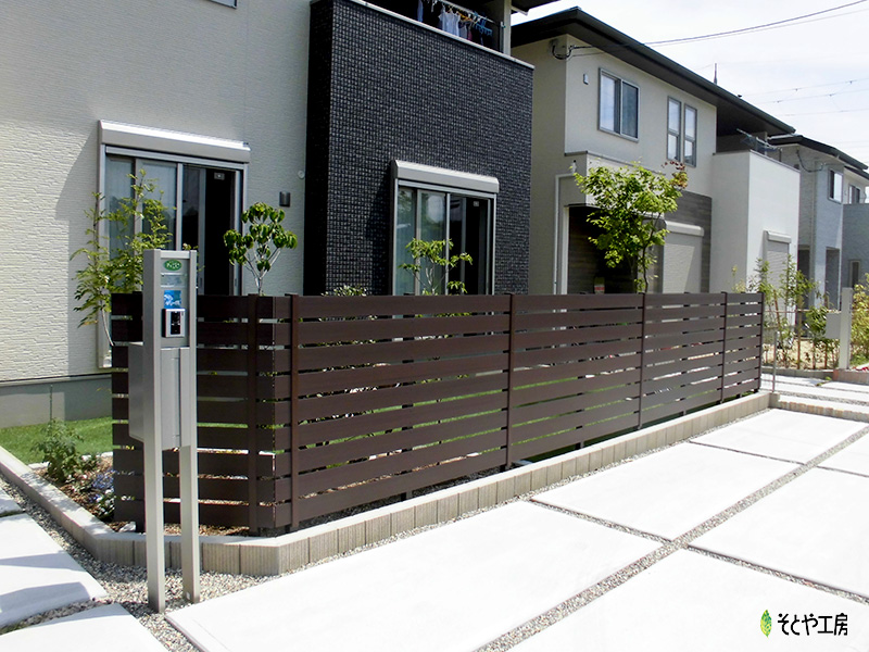 既存の生垣のメンテナンスが大変とのことで、木調フェンスへのやり替えをご希望でした。