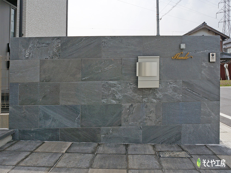 かつ大版のタイルで シンプルでありながらエレガントな門回りにしました。
