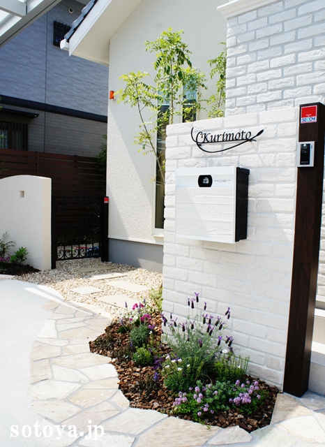 白い外壁に合うように、エクステリアも白で上品にまとめました。