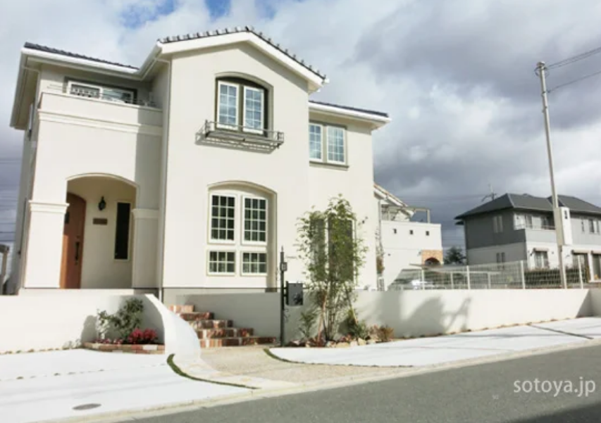 コンクリートの面積が大きいと無機質になりがちです やわらかい曲線を入れ、温かみのある素材を使用 建物の雰囲気をこわさないようにエクステリアを添えました。