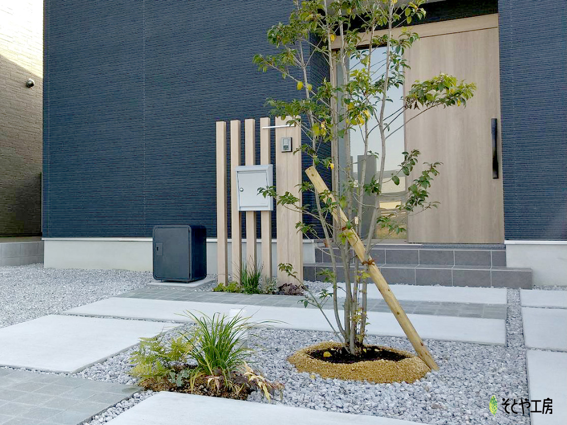 新築滋賀栗東店ガーデン門柱・エントランス植栽