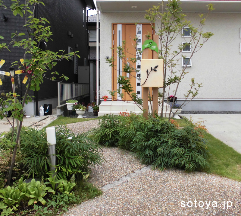新築滋賀栗東店ガーデンアプローチ門柱・エントランス駐車場・カーポート照明・ライト植栽