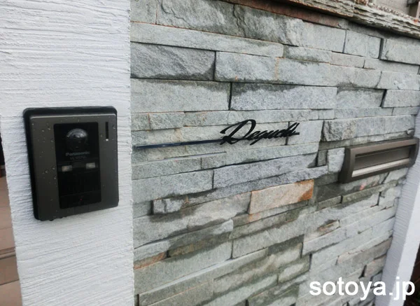 石の質感を生かしつつ、さりげなく表札も主張するシンプルなものを選びました。
