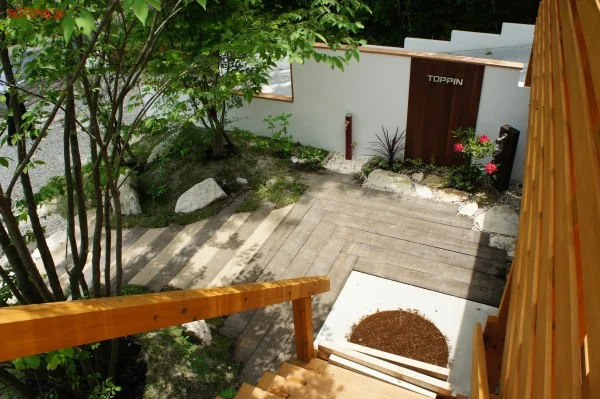 周囲の環境を利用し、ナチュラルな外構に仕上げました。