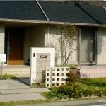 芝生と植物の美しいオープン外構。 自然とうまく溶け込んだシンプルな門柱。 モダンさとナチュラルさを兼ね備えたスクリーンブロックでアクセントを。 表札はアニマル銅クラフト表札 ヒポウAです。