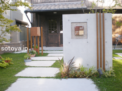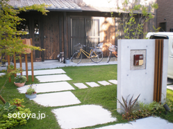 新築滋賀栗東店アプローチ門柱・エントランス塀・フェンス・目隠し照明・ライト植栽