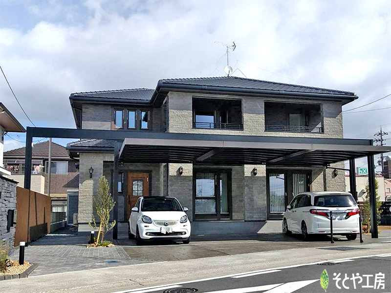 カーポート屋根は、建物の雰囲気を損ねない三協アルミの「Uスタイルアゼスト」をご提案しました。