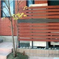 高さのあるフェンスは建物と一体に見えるよう色使いにも気を配り、電気温水器も上手く隠せました。