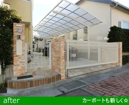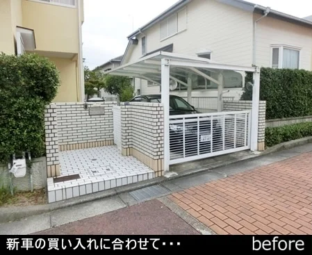 1台分の車庫を2台用に延長するとともに、老朽化したオーバーゲートの間口を広げ、アプローチを可愛い雰囲気に。これまでとは見違えるようになりました。