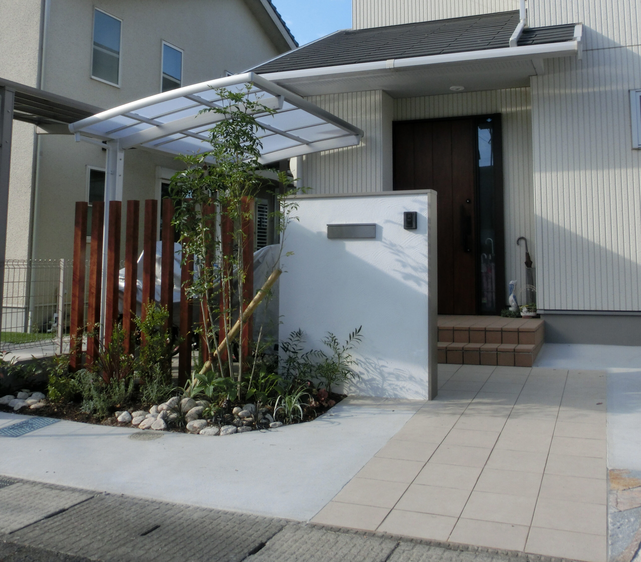 リフォーム滋賀栗東店門柱・エントランス駐車場・カーポート植栽