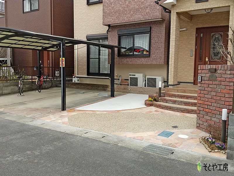 アプローチとガレージを分断していたブロックと土のスペースを撤去し、ガレージへの動線もスムーズで便利になりました。