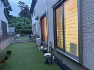 人工芝で広々としたお庭。